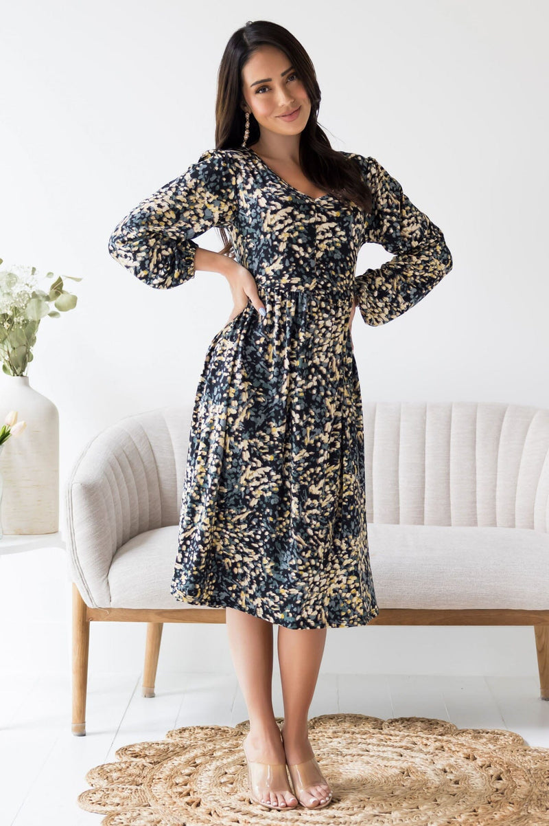 It was absolute love at first sight! The sweetest little Lexa dress is one you need to add to your wardrobe now! Featuring an lovely v-neckline with ruche detailing, long sleeves, and the most feminine flowy mid-length skirt. Get yours today, we promise this one will go fast!