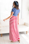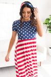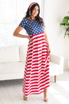 We love to share our love for maxi dresses with all of you! That's why we our giving the gift of maxi galore! This beauty features gorgeous & patriotic print, short sleeves, round modest neckline, and of course pockets, don't forget the most softest material EVER!