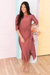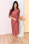 Time to look and feel like a million bucks with the darling new Lillabet! This dusty rose lustre fabric is to die for! Pair this perfect for any occasion wrap skirt dress with your favorite heals or booties and let the adventure begin.