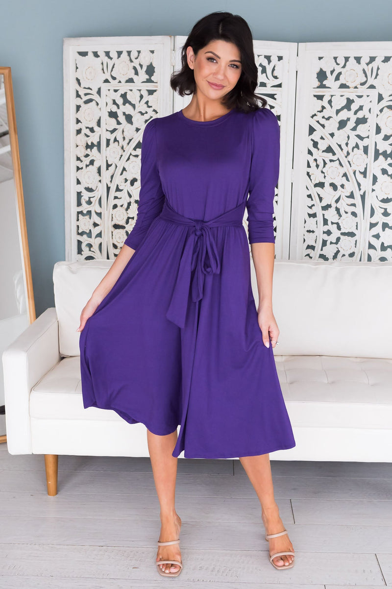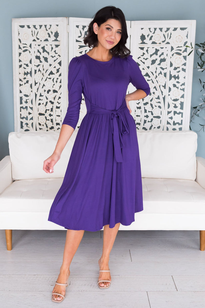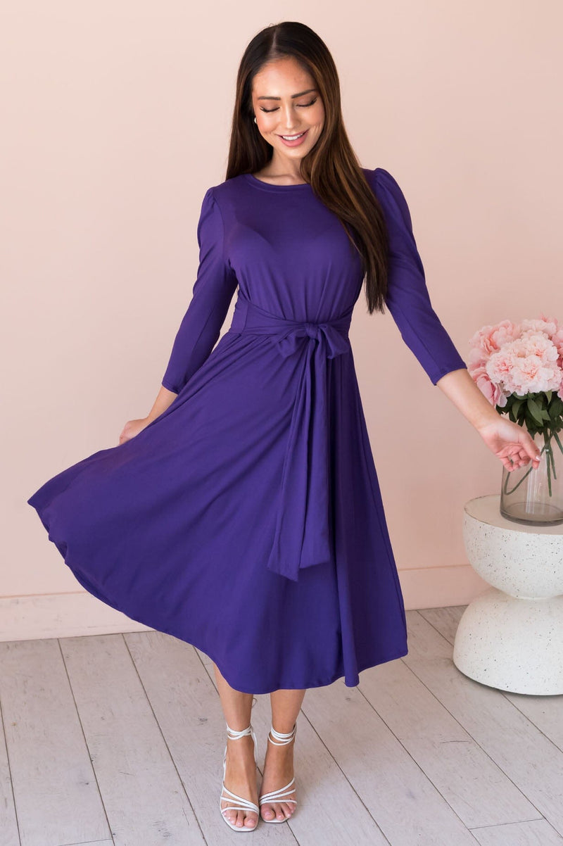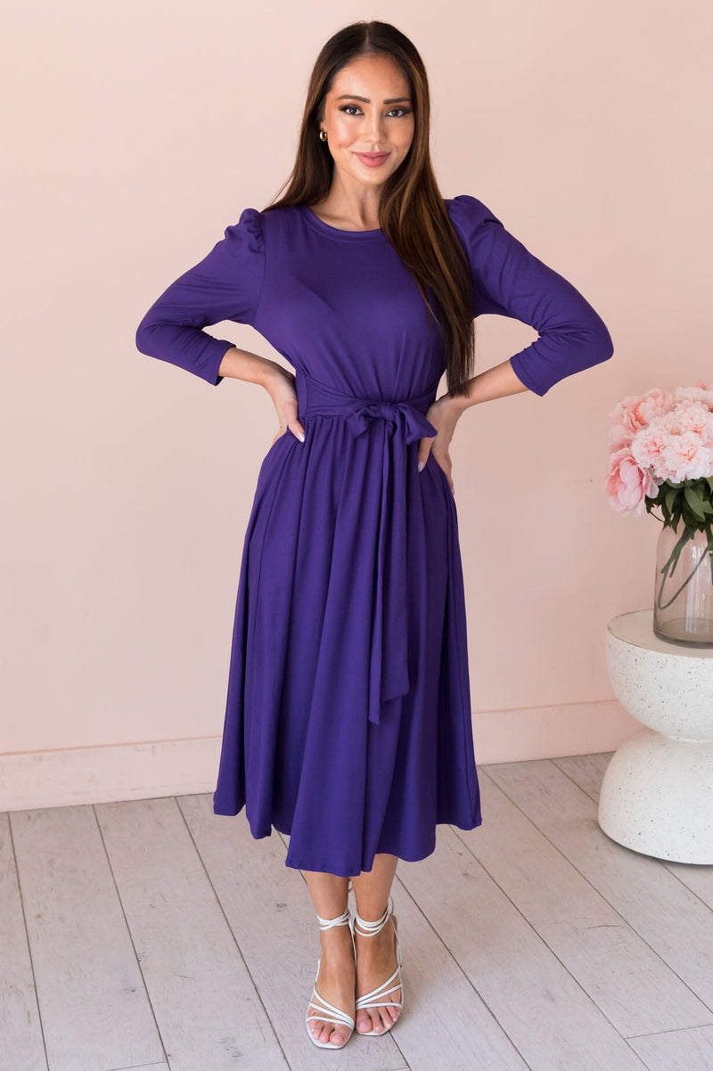 Have you been on the search for the perfect dress? Trust us when we say, you need this dress in your closet! This modest beauty has all the best features to include, 3/4 length fitted sleeves and the most flattering tie waistline detailing! Get yours today!