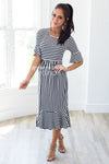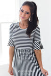 *Please note due to the style of this dress, all stripes may not line up exactly even in all areas. This dress is not eligible for exchange due to stripe placement.