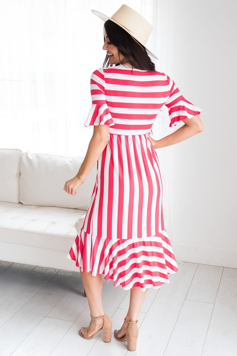 *Please note due to the style of this dress, all stripes may not line up exactly even in all areas. This dress is not eligible for exchange due to stripe placement.*