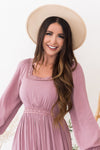 We are so excited to bring you the new Lisbeth! This darling light plum color is bound to make an impact on your closet! Features include a modest square neckline, long sleeves, delicate crochet lace detailing at the waistline and on the gorgeous tiered tea length skirt. Get yours today!