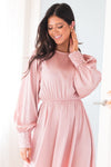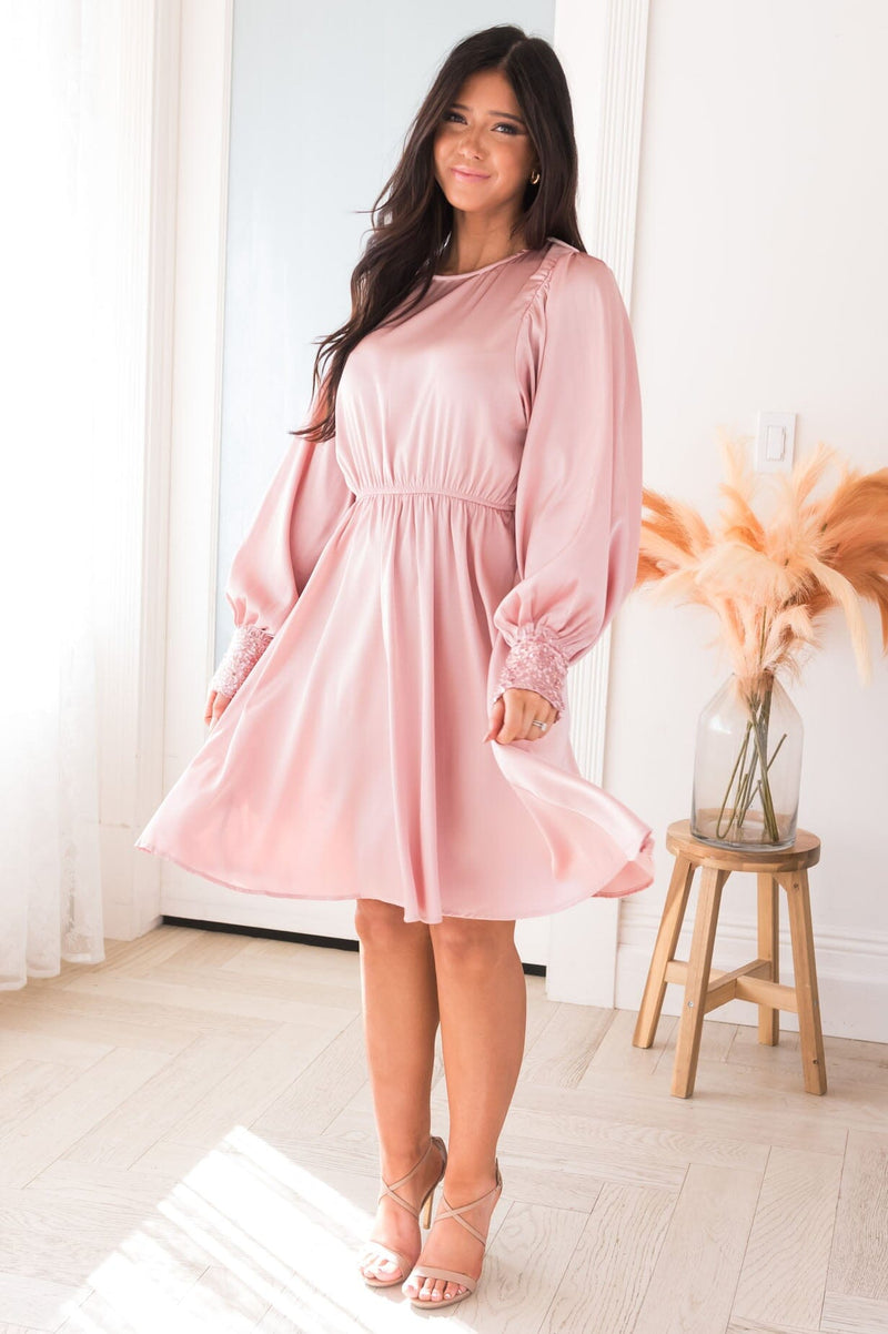 The Lollee is the dress dreams are made of! This flowy feminine satin dress is the it dress everyone will want to get their hands on this holiday season! Featuring a modest round neckline, the perfect amount of bling sequin cuff long sleeves and twirl worthy skirt.