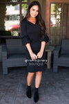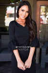 We are absolutely in love with our gorgeous rich burgundy Lolo dress! This bodycon style dress is going to give everyone a flattering silhouette. Sophisticated, Functional and Fun! This dress features a v-neckline, fitted waistline and bishop sleeves. You are going to need this piece added to your dress collection!