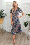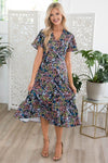 This gorgeous maxi dress is so flowy and feminine; we simply can not get over it! We just love the beautiful rich black color and colorful floral details, along with the short flutter sleeves. This modest maxi dress is a must have for any season!