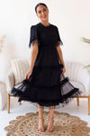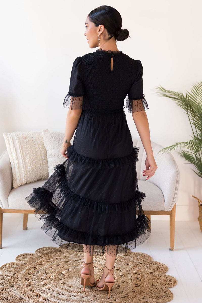 The delicate feminine, ruffled Lowen needs to be in your wardrobe! Featuring the ever flattering smocked bodice, high modest neckline, short ruffle detailed sleeves paired with the ruffle detailed skirt, this beauty is bound to be a hit for all!