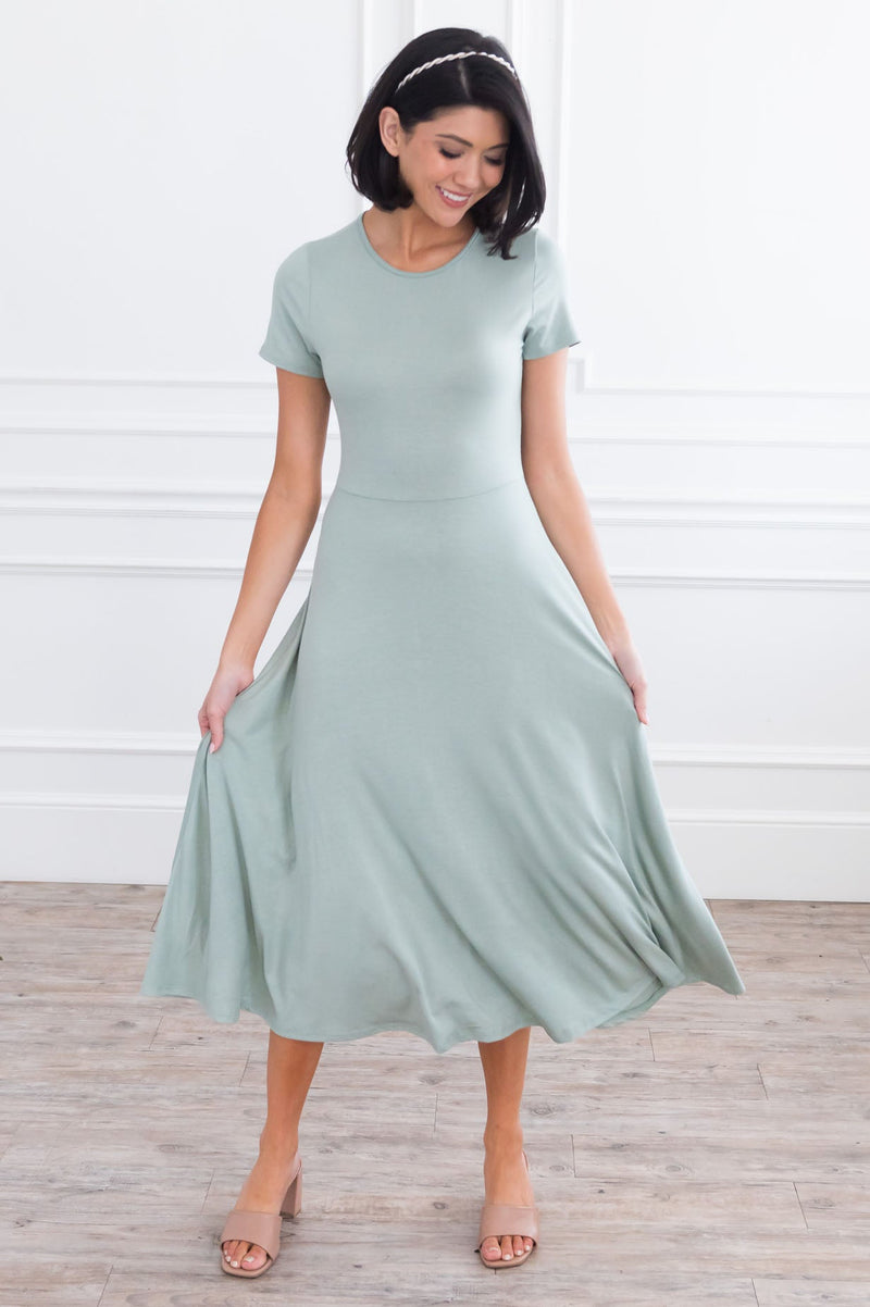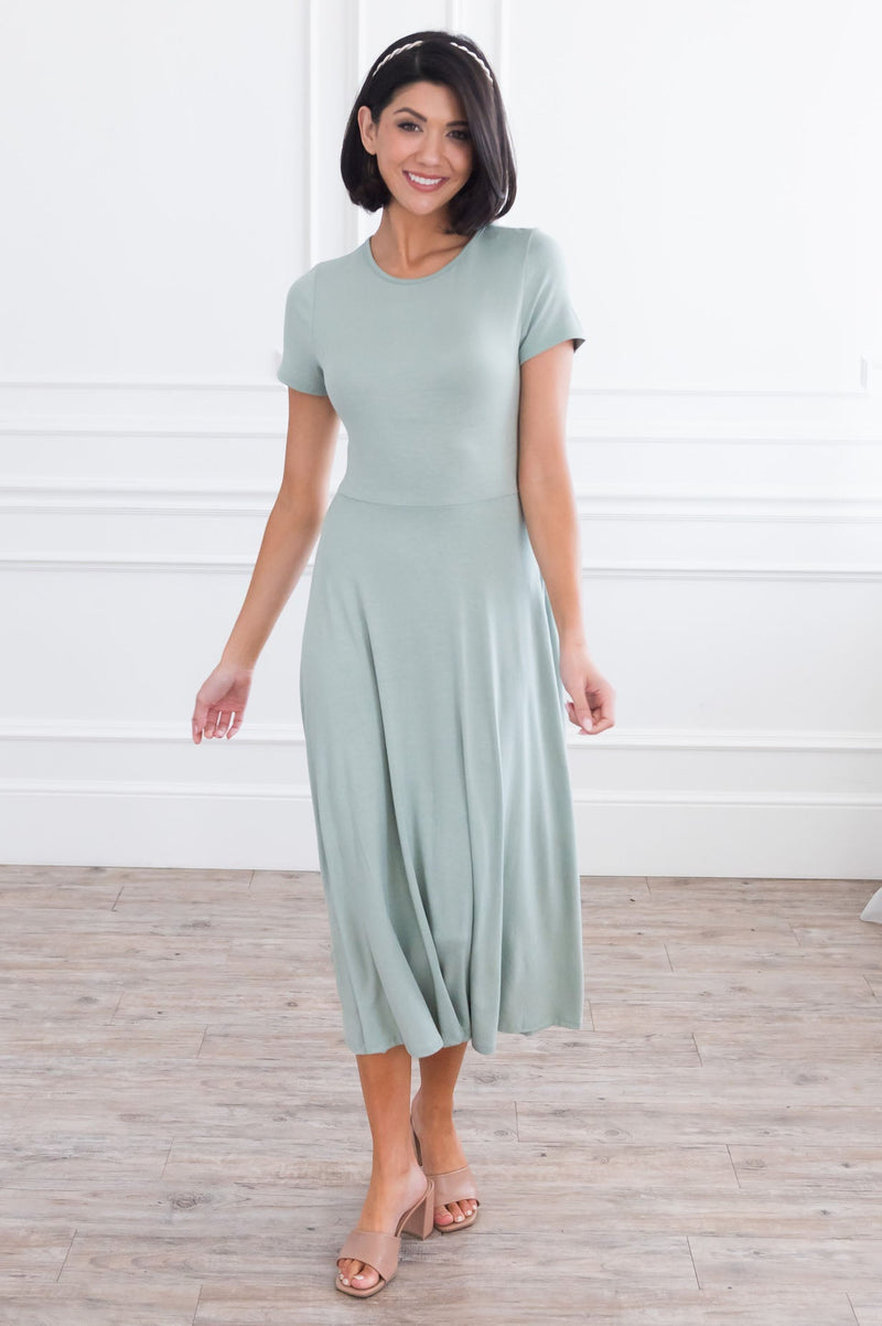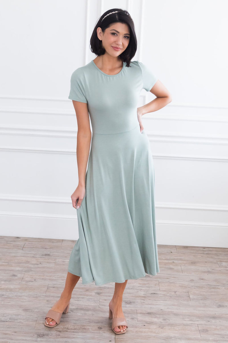 Fall is approaching quick! Get ahead of the game with this modest delicate beauty. This dress features short sleeves, round neckline, flowy shirt. Material of this is silky soft. Get yours today before they are all gone.