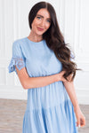 Another classy maxi dress is here to take your breath away! We are obsessed with the gorgeous lace sleeves on this beauty! This dress features a round neckline, keyhole button closure, elastic waistline and a full flowy tiered skirt. This is going to be perfect for all those special occasions you have coming up in your life!