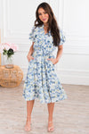 If you have been on search for the perfect Springtime dress, we have the one for you! Our lovely modest, Lyndsay, took our breath away. This gorgeous floral dress features a feminine v-neckline, adorable ruffled flutter sleeves, pockets and a perfect length ruffled hem skirt. Act fast and get yours today!