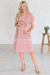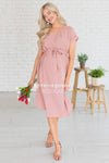 Allow us to introduce you to your go to dress! The Lyndsey, this darling dress is everything you could want and more! Featuring lovely flowy shift style with a belt tie waist, short cuffed sleeves, and last but not least is the delicate pleats at the modest neckline.
