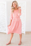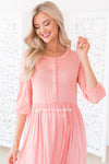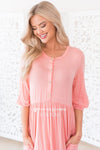 Stylish nursing friendly options for all mama's! The Macaila has the most darling soft stretchy fabric, it literally goes with anything, pair this beauty with all of your favorite accessories! Also featuring a round neckline with functional buttons, elastic waist, 3/4 length sleeves and pockets. Get yours today before they disappear!