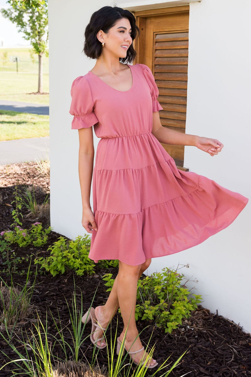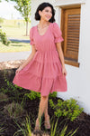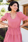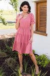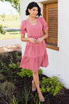 The new Madley dress will be nothing but darling on you! The beautiful classic mauve color is a beautiful addition to any wardrobe! We are so in love with the tiered skirt detailing, short ruffled cuff sleeves, elastic waist, and soft modest scoop neckline! Grab your favorite cardigan and go! Trust us, you won't want to miss out on this one!!