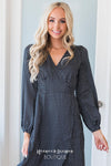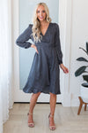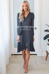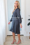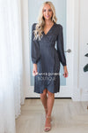 The classiest satin dress you will ever find! Featuring the softest, classiest black and ivory dot satin fabric, a true wrap style dress & long sleeves! These will go quickly, add to cart now before they are gone for good!