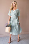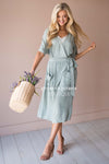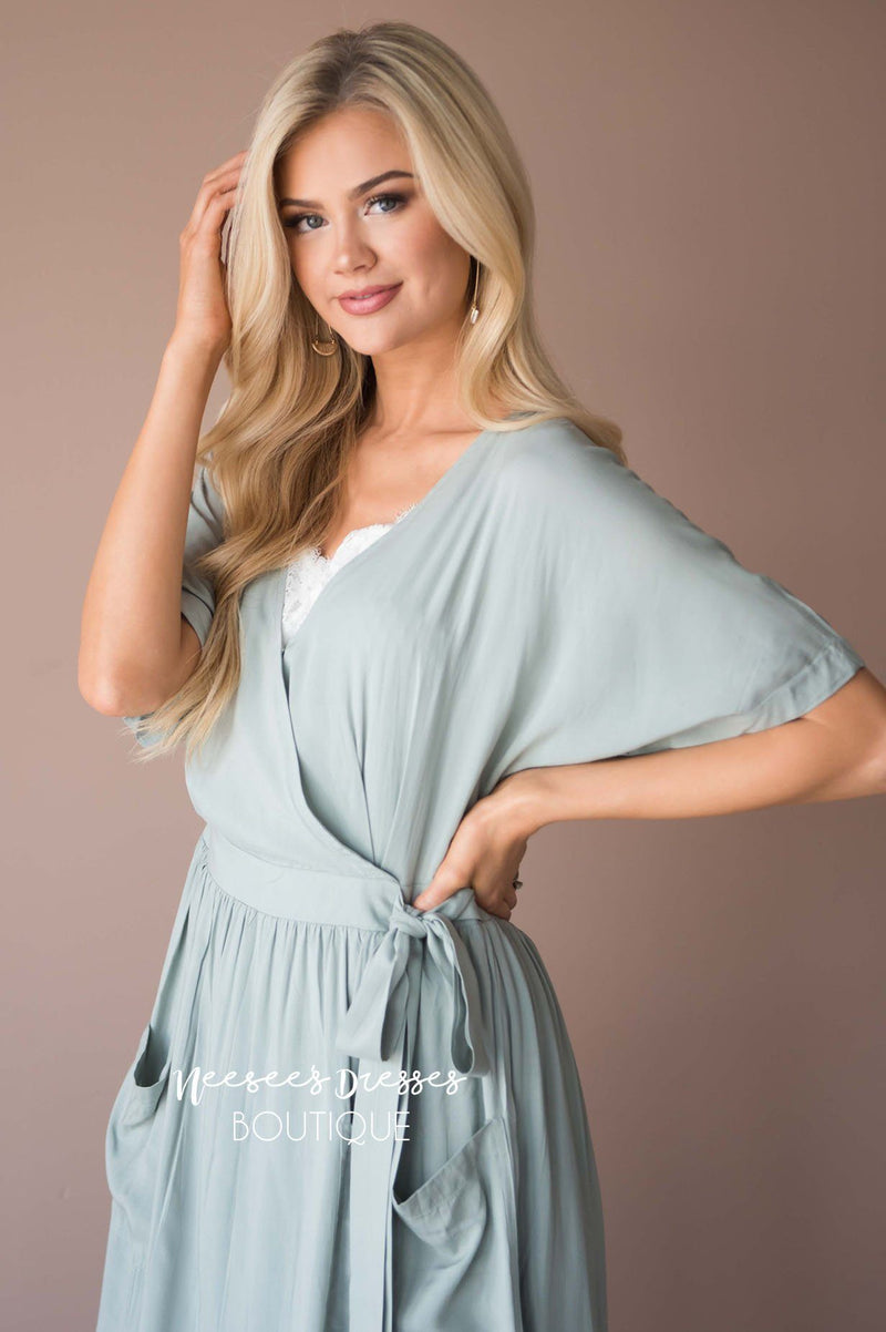We are obsessed over our new Maeve dress! This is going to be a perfect summer go-to, it is so lightweight and easy to throw on and go. The bodice is a wrap style with a little snap closure keeping it together! Other things to love about this dress are the gorgeous front pockets, cuffed sleeves, zippered back closure, a side tie waist detail and the skirt is lined. Don't wait on this one, it won't be here long!