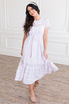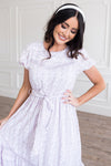 We are so excited to bring you the new Mahala! This darling pale lilac and white colored dress is bound to make an impact on your closet! Features include a modest round neckline with crochet lace bodice detailing, short sleeves, belt tie waist and a delicate crochet lace detailed ruffle tier skirt. Get yours today!