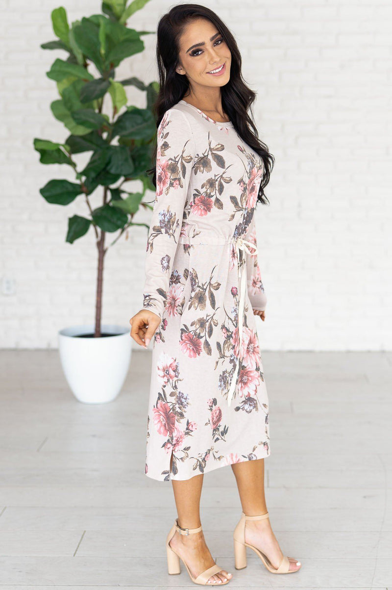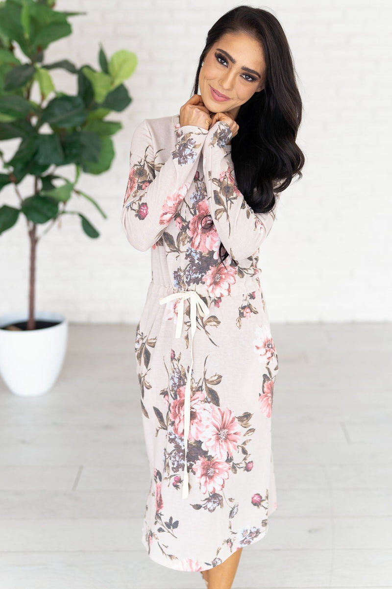 The Maia quickly became one of our favorites! We love the creamy beige color with floral print, it gives this Maia the perfect pop of color! Featuring a round neckline, long sleeves, super soft and cozy material and a drawstring waist. Get yours today!