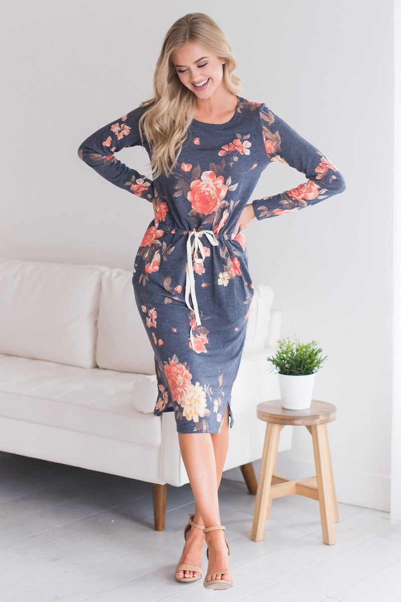 The Maia quickly became one of our favorites! We love the navy floral color with floral print, it gives this Maia the perfect pop of color! Featuring a round neckline, long sleeves, super soft and cozy material and a drawstring waist. Get yours today!