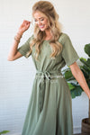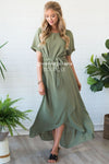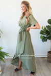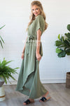 We run out of flattering words to use when describing the New Olive Maleah! It's so flowy and feminine, the perfect addition to everyone's closet, especially for the Fall/Winter seasons. Featuring a rounded neckline, short cuffed sleeves, belt tie waist and the ever lovely high/low wrap style skirt. Just say yes to the dress and get it today!