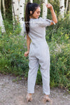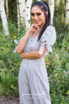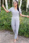 Our New Malinda jumpsuit is definitely going to be a show stopper! There are so many things to love about this piece like, the round neckline and bodice button for perfect nursing friendly coverage, short sleeves with a darling tie detail and a gorgeous wide band waist. This jumper is the perfect for maximum comfort and style!