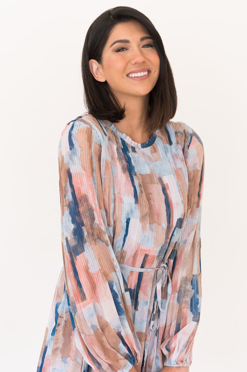 This gorgeous dress screams elegance! We are loving the soft pleated fabric, it is so flowy and beautiful. Features high modest ruffle neckline, fully lined shift dress with all the most feminine details. We've added a little tie belt for an elegant touch. Make the New Maliya yours today!