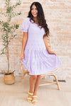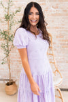 The darling Mallorie has stolen our hearts and we can not not wait to get our hands on this gorgeous lavender eyelet dress! Features include, short cuffed puff sleeves, modest round neckline, & flattering tiered skirt style.