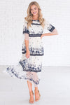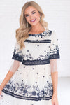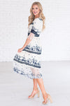 The classiest modest lace dress you will ever lay your eyes on just arrived! We are obsessed with the gorgeous new Maylnn dress! Featuring round neckline, half ruffle bell sleeves, zipper back closure, the perfect modest length and the most stunning navy embroidered overlay atop a ivory lining. Add to cart now, these beauties will not last long!