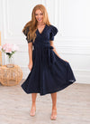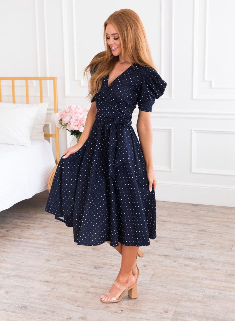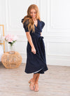 It truly doesn't get better than our new, modest, Marcie Dress. This dress will take you effortlessly through every summer BBQ, and every event in-between. Features include a trendy fit and flare style, short puff sleeves, belt tie waist and the most darling cross-over bodice making this dress nursing friendly too.