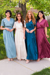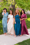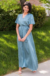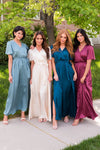 The newest satin stunner has arrived and we are obsessed! This dress is the perfect special occasion dress, bridesmaid dress, you name it, you will make an impression the second you put this dress on! Featuring a crossover bodice, belt tie waistline and perfect length maxi skirt.