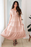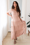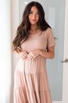 From basic to beauty! This perfect length tiered dress is bound to be your next modest must have! We are loving the short fitted sleeves and rounded neckline! The Mardie, is perfect all on its own or paired with your favorite accessories & jean jacket!