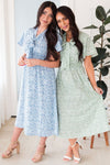 Sophisticated, modest, and absolutely adorable. Our Margot is just what you need this spring. This beautiful modest dress features a cute tie neck, flutter sleeves, a smocked waist and adorable mini floral.