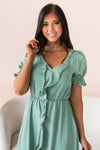 The new Maria Kate dress will be nothing but darling on you! The beautiful sage color is a beautiful addition to any wardrobe! We are so in love with the soft v-neck and front ruffled detailing, short puff sleeves, elastic waistline, pockets and perfect length skirt! Grab yours today!