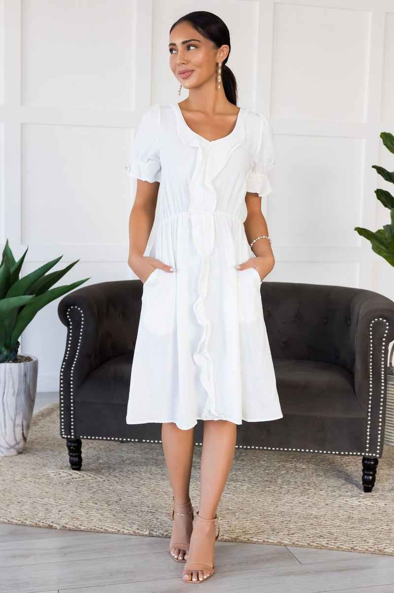 The new Maria Kate dress will be nothing but darling on you! The beautiful white is a perfect addition to any wardrobe! We are so in love with the soft v-neck and front ruffled detailing, short puff sleeves, elastic waistline, pockets and perfect length skirt! Grab yours today!