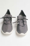 Marie in Grey is a Microfiber athleisure sneaker. the upper has perforated panel detailing. Features a lace-up closure. Synthetic lining. Rubber outsole.