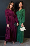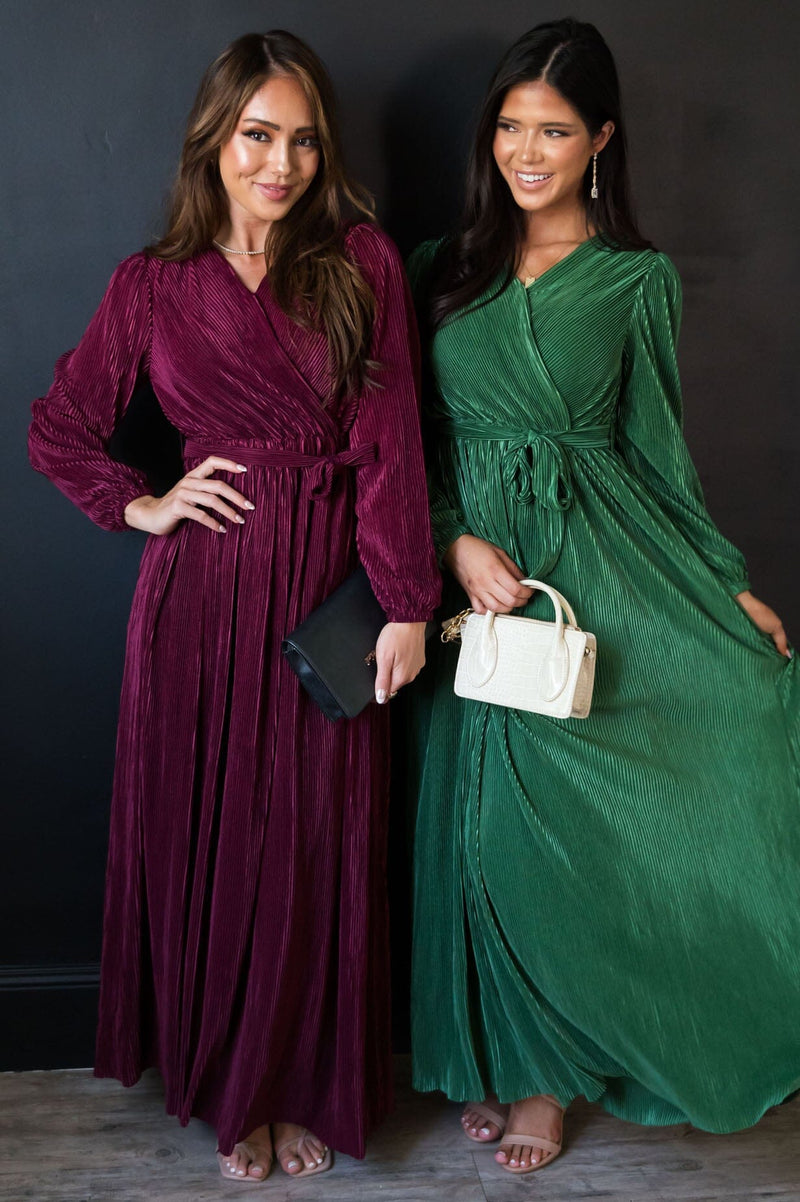 The lovely Marilyn had our hearts at hello! The festive yet perfect for any event color and style is bound to be a must have for every wardrobe! Featuring a cross-over bodice, belt tie waistline, long sleeves and a stunning flowy maxi skirt. We are also obsessed with the darling ribbed fabric, get yours today!