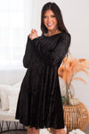 The Marina is the perfect piece for your wardrobe! No matter what event you have, you're bound to turn heads in this velvet dress! The gorgeous black velvet, long sleeves, and ribbed texture are all so darling! Make sure to get yours today!