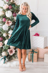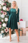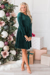 The Marina is the perfect piece for your winter wardrobe!! No matter what holiday event you have, you're bound to turn heads in this velvet dress! The gorgeous emerald green color, long sleeves, and ribbed texture are all so darling! Make sure to get yours today!