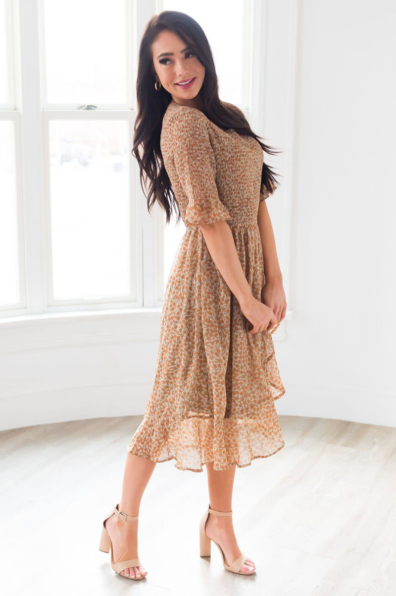 This darling little Marlena dress is bound to make an impact! We are in love with the smocked bodice, half smocked ruffle sleeves and last but not least the perfect length flutter wrap skirt! This dress is also lined and has pockets.