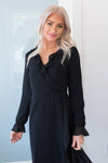 How elegant and gorgeous is this new arrival!? The Marley is another one we couldn't imagine not having in our collection! The Marley has all the best features, including a soft v-neckline, functional button front bodice that makes this nursing friendly, hi-low ruffled maxi skirt, long sleeves with adorable ruffle cuff detailing and last but not least the most gorgeous black color! Trust us, the Marley is a must have!