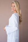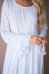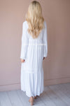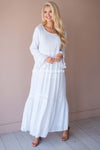 Simple yet so elegant! This dress features a floral embroidered detail across the bodice, an empire waist, long bell sleeves, and comes fully lined. The tiered ruffle towards the bottom of this maxi will give you major heart eyes! We promise you will not want to miss out on this dress!
