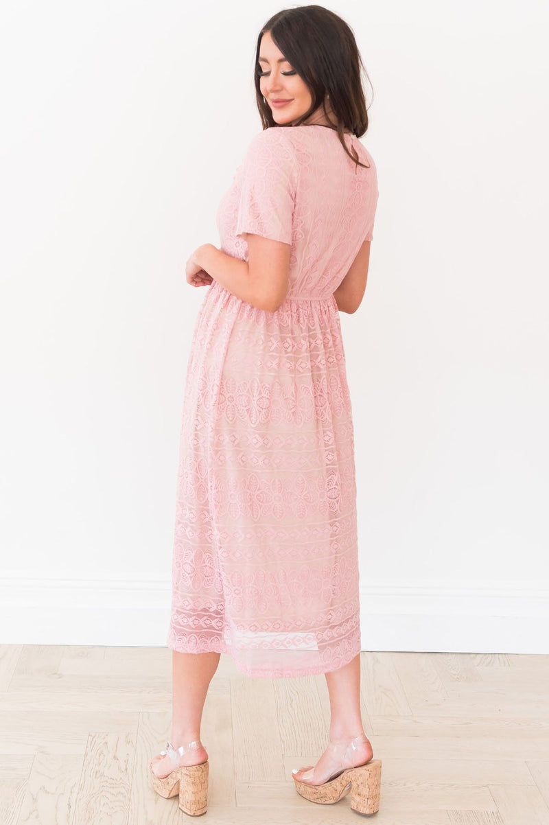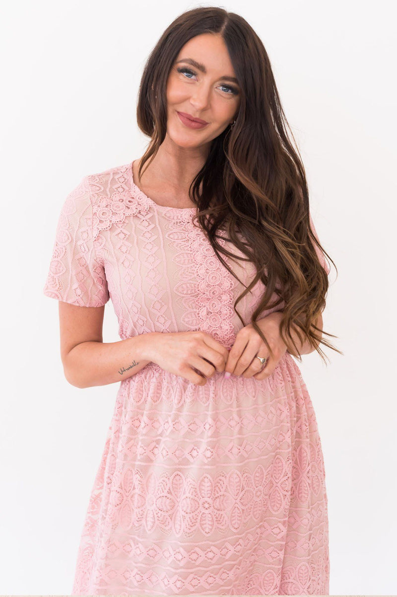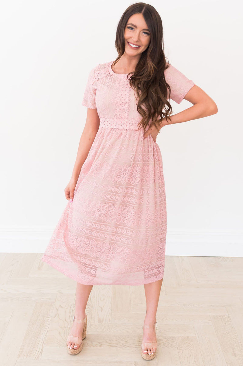 From the elegant light rose lace overlay, belt detailing at the natural waistline, and the simple cap sleeves will have you sold! This lace pattern is a new fan favorite; the abstract floral is just stunning! We know the class and elegance of this dress makes it perfect for any event you have coming up!