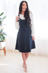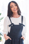 This chic overall dress is perfect to wear all year long! We love that this gorgeous navy blue dress can be paired with anything. Featuring a square neckline and of course cute bow overall straps that give you a fashionable nursing friendly option! Get yours today!