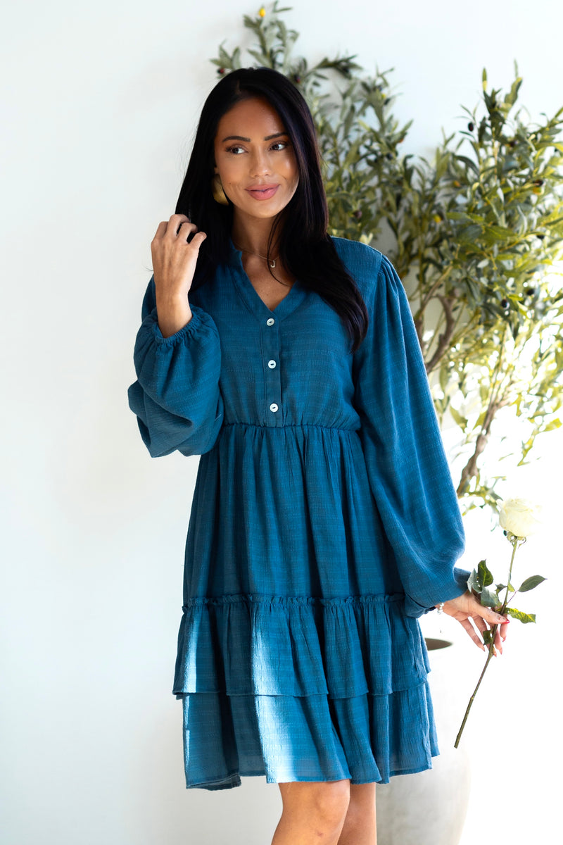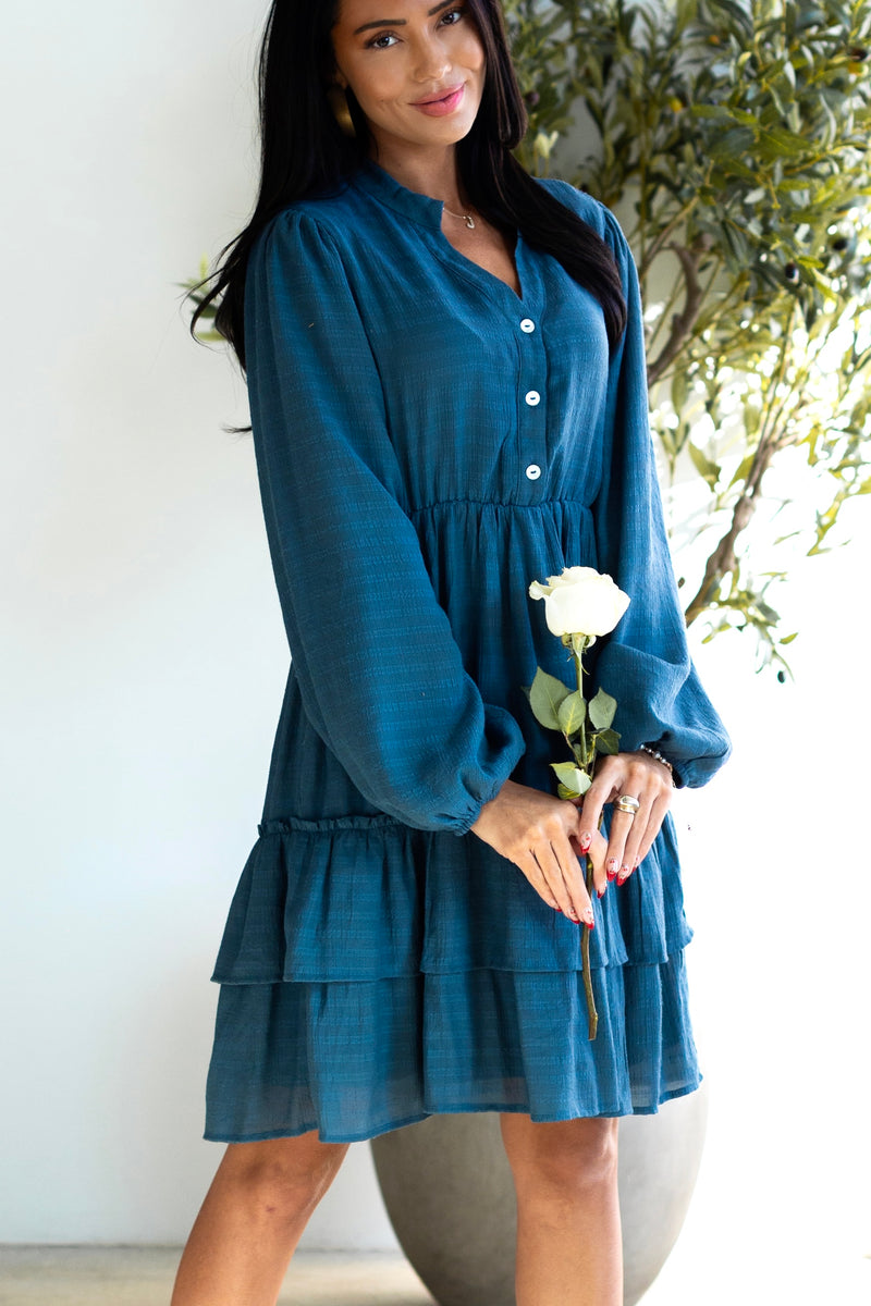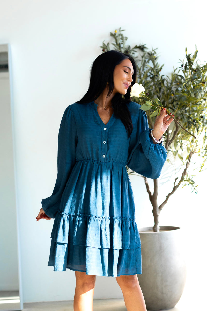 Introducing the Matilda! Trust us when we say you need this in your wardrobe! Perfect for any season, perfect for pairing with your favorite jackets and leggings, your favorite boots and hats. It is just perfect all around! Featuring a v-neckline with functional button front bodice, long sleeves, elastic waistline and the perfect length ruffle tiered skirt. Get yours today!