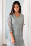 The precious Max had us at hello! Trust us when we say add to cart now, this dress will not last long! Featuring, a modest soft v-neckline, quarter length sleeves, and a must have drop hem ruffle skirt.
