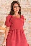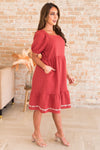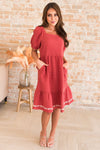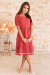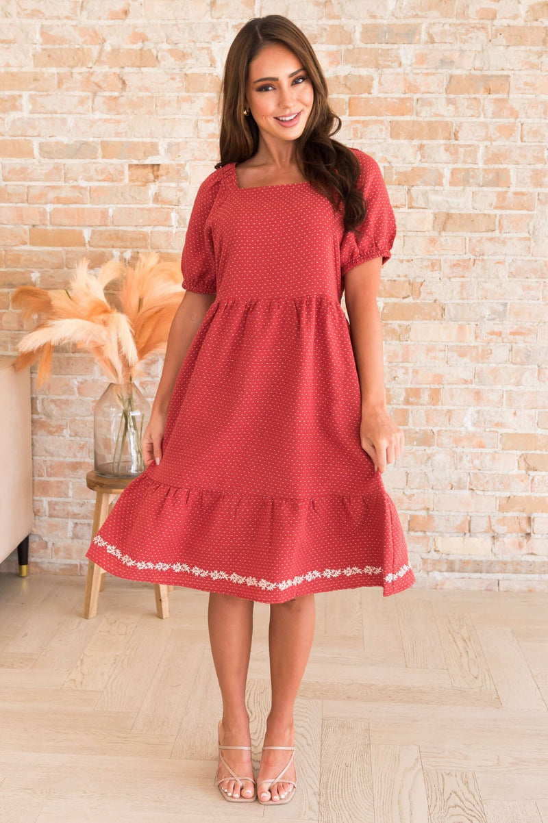 The Mayla is the perfect dress for any occasion you may have! Featuring a gorgeous textured dot red and white fabric, the cutest dainty embroidered detail on the hem of the flowy skirt, pockets, short puff sleeves and a squared neckline with ruched shoulder detailing! We are in love with this one, make sure to get yours soon!
