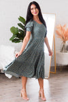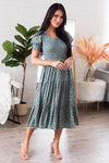 This lovely spruce green floral pattern dress is breathtaking! We are so in love with the elegance of this dress with its classy short puff sleeves and tiered ruffle skirt this dress it's absolutely perfect for Spring! Get yours today, these beauties will go fast!