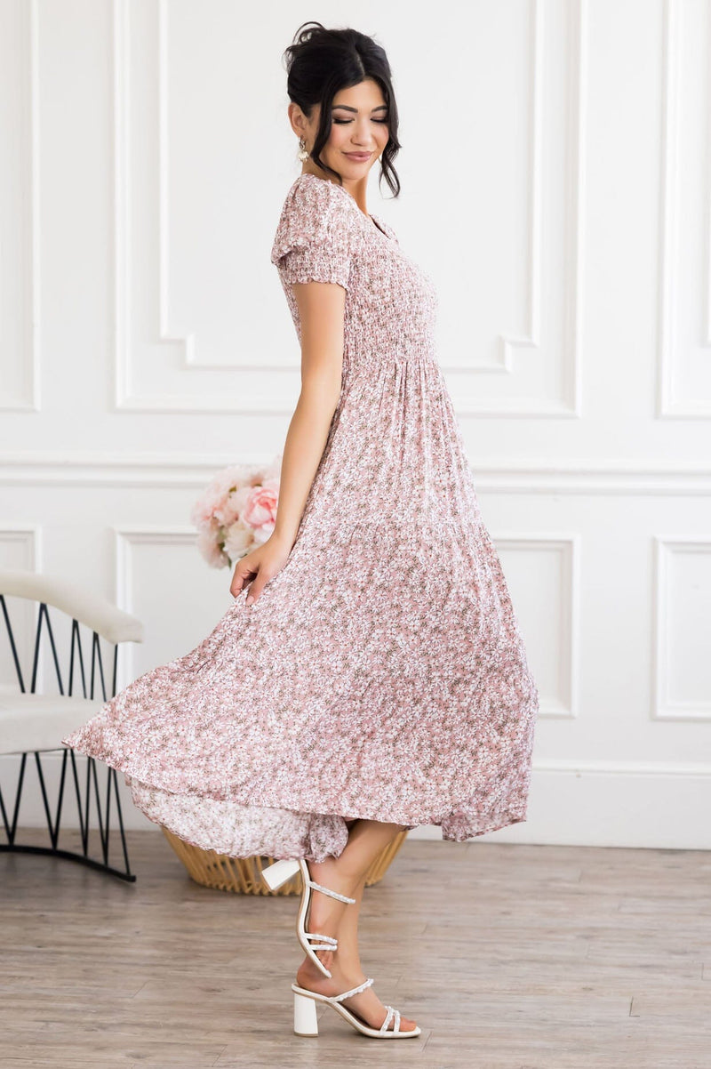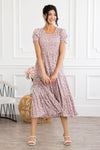 This lovely pink daisy floral pattern dress is breathtaking! We are so in love with the elegance of this dress with its classy short puff sleeves and tiered ruffle skirt this dress it's absolutely perfect for Fall! Get yours today, these beauties will go fast!