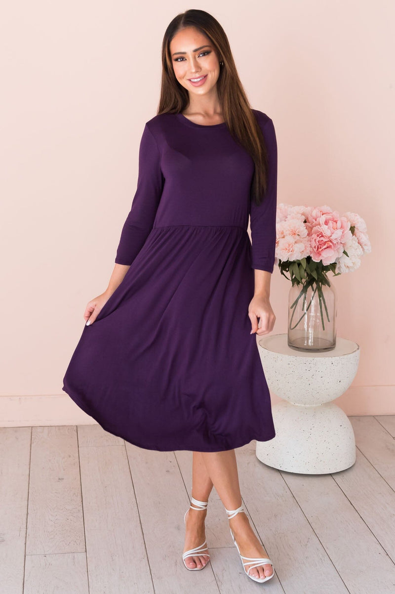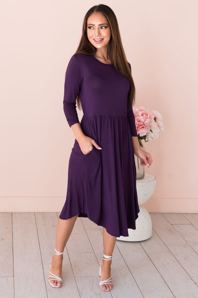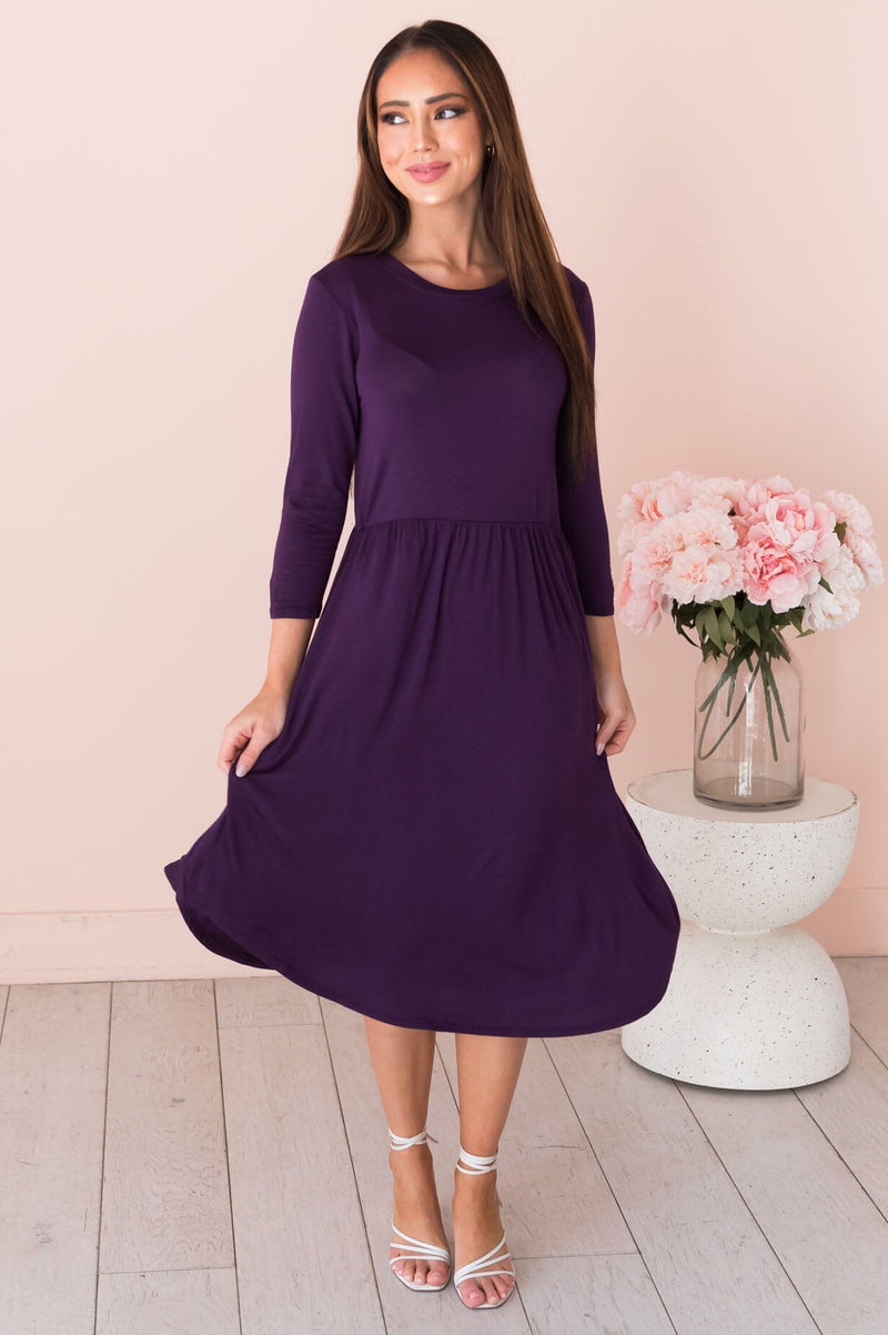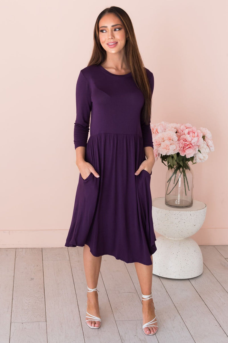 The new McKaylee has arrived and is the perfect dress for you! We are loving the quarter length sleeves,  modest round neckline, elastic waistline, pockets and perfect length skirt. This lovely dress has all the best features in one dress! Get yours today!