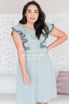 The adorable new dress is just what you are looking for this spring! From this stunning shade of sage, to the ruffle detailing bodice and sleeves, there is nothing not love about this dress? Featuring a scoop neck line, ruffle detailing bodice and sleeves plus a embroidered trim detail, a fitted waist and midi length skirt. This dress is also lined and has a back zipper closure.