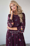 Be dressed in head to toe sophistication in our new Mel Maxi Dress! This classy and beautiful wine maxi dress features long sleeves, a gathered waist and pretty grid floral print. Lined with back zipper closure.